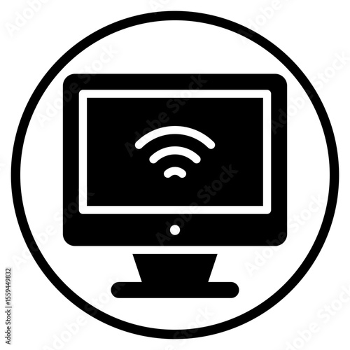 wi-fi, wireless, cyberspace, connection, network, monitor, computer, screen, desktop, circle, icon, solid, glyphs, graphic, set, circular, illustration