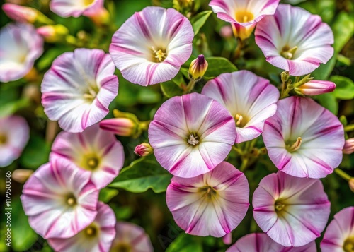 Wild bindweed's delicate flowers in stunning detail: a close-up top view of Convolvulus arvensis.