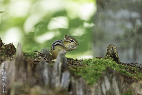 Wild chipmunk in a Boreal forest, north Quebec, Canada.