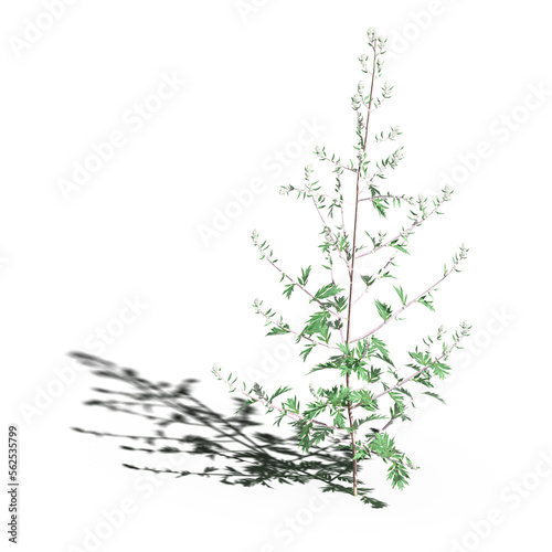 wild field grass with a shadow under it, isolated on white background, 3D illustration, cg render