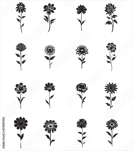 wild flowers set,silhouettes of flowers,eps,drawing,editable and print ready,for wall art,cutting file