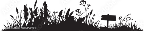 Wild Grass and Weeds Silhouette for Natural Landscape Design, Rustic Botanical Elements, Field Border, Nature-Themed Vector Illustration