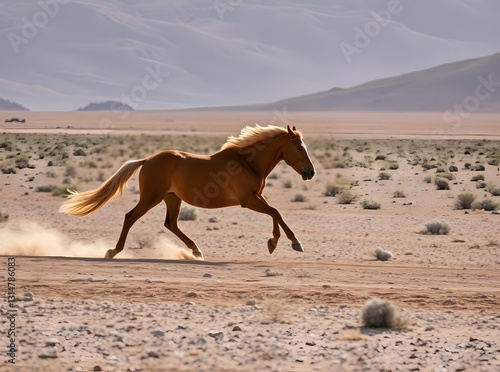 Wild Horses Running in the Dessert, Nature related image, Animal wild life image, wild life decoration, ai generated