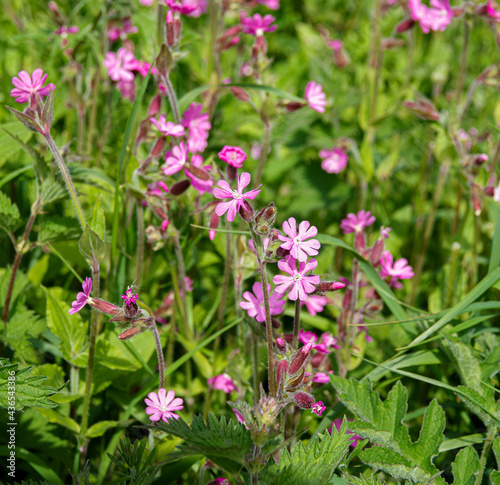 wild Red Campion (Silene dioica) growing in unspoilt UK woodland