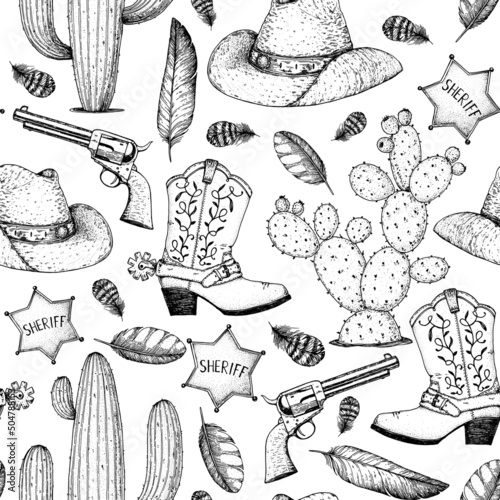 wild, west, western, pattern, seamless, weapon, us, vector, illustration, t-shirt, cowboy, colt, clothes, boot, badge, sheriff, vignetting, texas, fabric, doodle, drawing, decoration, vintage, wallpaper, print, scrapbook, retro, seamless pattern, feather, background, art, apparel, america, american, art, cactus, cartoon, design, drawn, element, graphic, hand, hand-drawn, hat, history, ink, ornament, repeat, texture