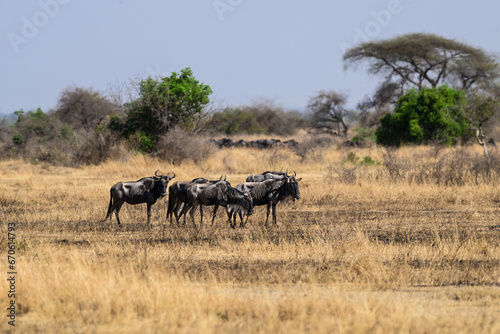 Wildebeests in the great plains of Serengeti ,Tanzania, Africa