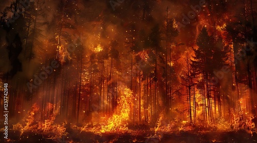 Wildfires or forest fire burning with a lot of smoke. AI generated illustration