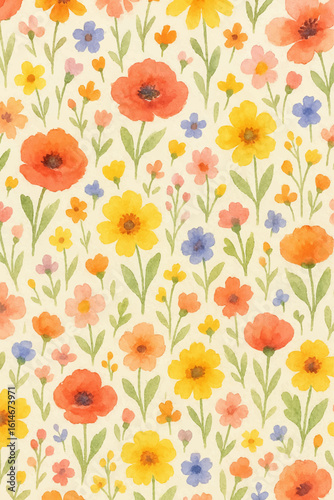 Wildflower Meadow Watercolor Illustration, Colorful Botanical Field with Spring Bloom