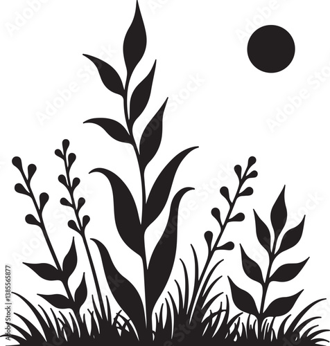 wildflower, silhouette, nature, botanical, meadow, floral, plant, grass, black-and-white, outline, spring, summer, field, garden, bloom, blossom, herb, foliage, landscape, natural, flora, greenery, decorative, vintage, illustration, drawing, peaceful, tranquil, countryside, wild, minimalist, rustic, art, organic, scenery, earthy, design, pattern, monochrome, shadow, contrast, detailed, delicate, soft, serene, aesthetic, background