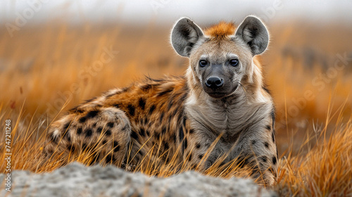 wildlife photography, authentic photo of a hyena in natural habitat, taken with telephoto lenses, for relaxing animal wallpaper and more