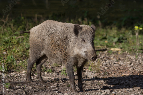 pursuit, sow, boar, hunter, forest, animal, mammal, pig, nature