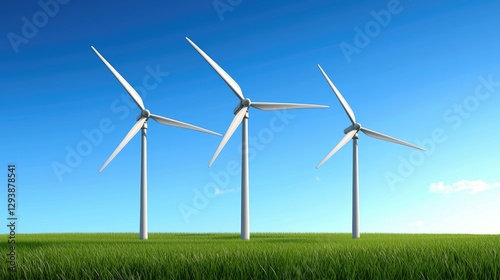 Wind turbines generating renewable energy open field photography clear sky horizon sustainability concept