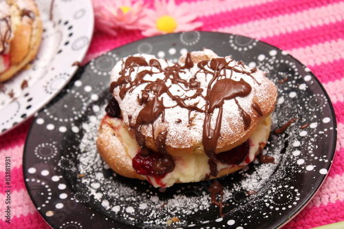 cream puff, pie, cookie, pastry, food, food, sweet, sweet, munch, cream, chocolate, fruit, fruit, berry, raspberry, dessert, candy, sugar, icing sugar, baked, tasty