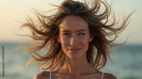 head shot, person, portrait, hair, wind, motion, blurred background, dynamic, movement, expressive, emotion, feeling, windswept, candid, natural light, photo, image, picture, facial expression, human, model, style, casual attire