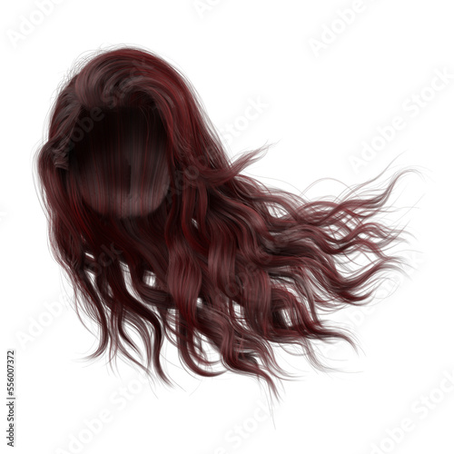 Windblown long wavy hair on isolated white background, 3D Illustration, 3D Rendering