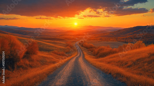 sunset, road, landscape, countryside, nature, journey, travel, adventure, horizon, sky, cloud, scenic, rural, field, summer, golden hour, vacation, freedom, exploration, outdoors, tranquil, peaceful, beautiful, destination, winding road, perspective, vanishing point, endless, wanderlust, idylli, serene, picturesque, warm, atmospheric, highway, sunrise, sun, grass, mountain, vale, route, driving