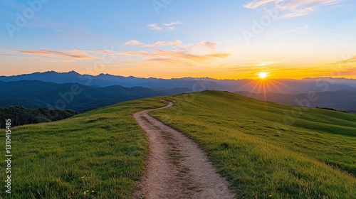sunset, mountain, cloud, landscape, nature, evening, scenic, tranquil, winding, trail, peaceful, horizon, sky, sunlight, summer, journey, exploration, beauty, grass, picturesque, natural, serenity, rural, adventure, terrain, twilight, meandering, vista, foreground, scenic route, travel, wildflower, harmony, charme, panorama, dusk, highland