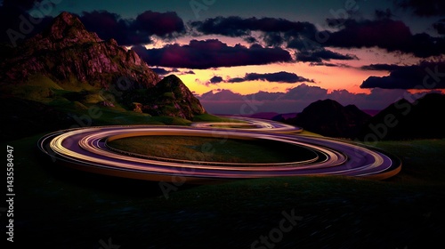 road, winding, curve, sunset, mountain, landscape, scenic, nature, travel, journey, beauty, peaceful, calm, tranquil, vibrant, colours, cloud, horizon, twilight, light, dusk, dawn, night, mountain, view, peace, calmness, road trip, driving, adventure, vacation, trip, wanderlust, exploration, escape, freedom, beautiful, picturesque, amazing, stunning, spectacular, unforgettable, colours, artistic, digital, illustration, art