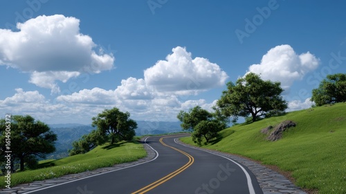 Winding road journey through scenic landscape mountainside nature view daytime vibrant sky and greenery