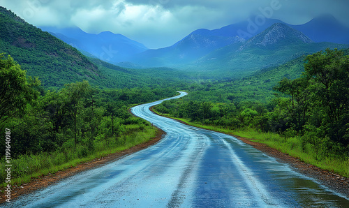 road, mountain, rain, travel, adventure, landscape, highway, scenic, nature, journey, winding, asphalt, drive, way, path, curve, mountain, sky, cloud, green, forest, tree, view, scenery, background, summer, spring, vacation, explore, freedom, relaxation, serenity, peaceful, hope, inspiration, discovery, destination, escape, wanderlust, horizon, open