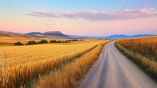 road, countryside, winding, gold, wheat, field, sunset, nature, landscape, sky, horizon, agriculture, serene, peaceful, beauty, rural, twilight, summer, grass, earth, scenery, travel, tranquil, scenic, colours, light, cloud, path, farmland, view, environmental, daylight, adventure, idylli, exploration, natural, harmony, open space, charme, vista, destination, wide, expanse