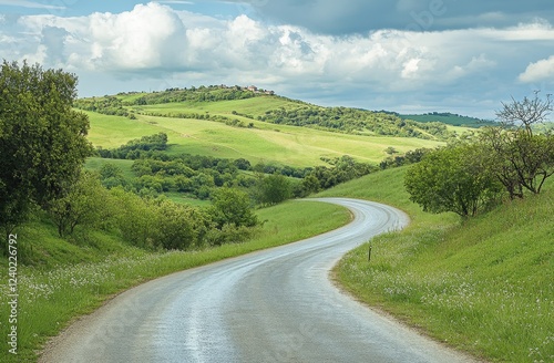 road, tuscany, hill, countryside, drive, scenic, winding, travel, landscape, italy, summer, green, nature, view, sky, cloud, asphalt, curve, path, journey, vacation, adventure, explore, relaxation, freedom, open, rural, beautiful, serenity, peaceful, tranquil, holiday, escape, spring, sunlight, panorama, photo, background, image, picturesque, destination