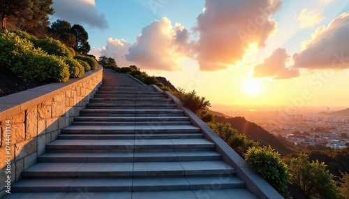 staircase, upward, ascent, climb, journey, travel, lifestyle, architecture, urban, sunny, blue skies, asphalt, concrete, step, uphill, perspective, ambition, progress, success, city landscape, los angeles, california, low angle, summer, bright, sunny day, optimism, hope, adventure, exploration, wanderlust, young adult, family, couple
