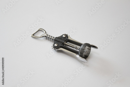 Wine bottle opener on white background.