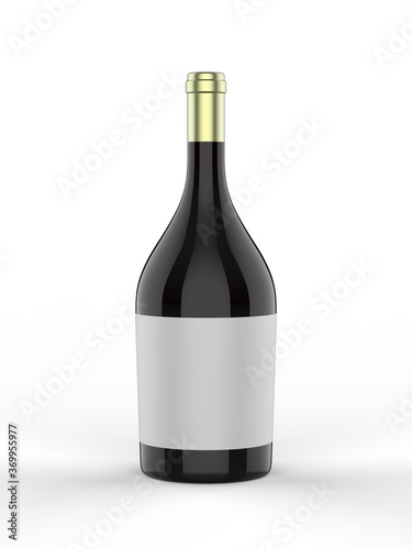 Wine bottle with blank label for branding and mock up. 3d render illustration.