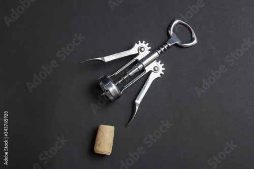 corkscrew, black background, wine, open, opener, alcohol, uncork, white, cork, bottle, waiter, tasting, stopper, red, life, food, drink, alcoholic, still, glasses, silver, shiny, iron, closeup, single, tool, stainless, shine, metallic, brown, spiral