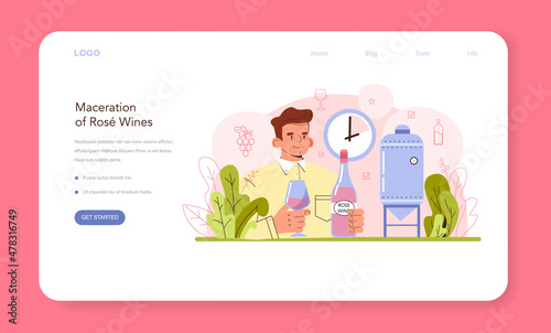 Wine production web banner or landing page. Red and rose wine maceration
