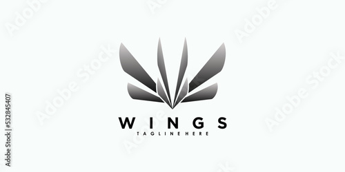 wings logo design with illustration premium vector
