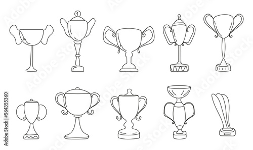 Winners cup icon vector in doodle style. First place icon. Champion cup in doodle style. Awards, trophy cups, stars.