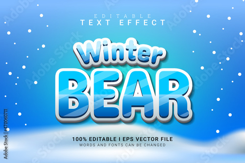 winter bear editable text effect vector illustration