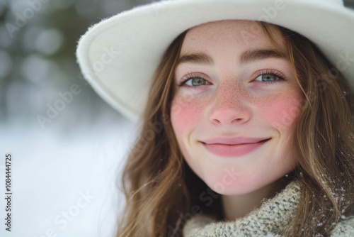 winter, snow, woman, smiling, closeup, hat, young, portrait, cold, fashion, outdoors, beauty, joy, snowflake, nature, seasonal, holiday, cheerful, white, landscape, winter storm, fresh, serene, elegant, happiness, warmth, stylish, accessory, lifestyle, glacé, relaxed, tranquil