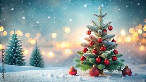 Winter Christmas Fir Tree Red Balls Minimalist Landscape AI Photo