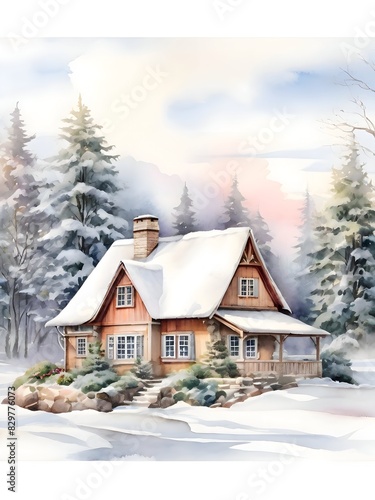 bungalow, house, watercolor, art, nature, architecture, building, town, home, street, europa, village, historic, house, building, window, england, old, tree, landscape, rural, snow, winter, cold, mountain, sky, christmas, forest, farm, season, cabin, wood, tree