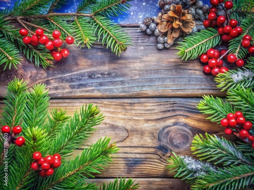 Winter Floral Christmas Watercolor Illustration with Red Berries and Fir Tree Branches
