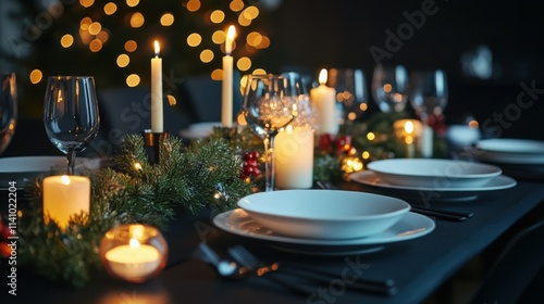 winter, holiday, dinner, party, celebration, concept, crockery, christmas, scandinavian, candle, tree branch, fork, rustic, home, napkin, evening, traditional, gold, festive, drink, december, dining, tablecloth, fir, new, ornament, table, design, red, arrangement, black, year, cutlery, indoor, event, tableware, plate, food, family, christmas, background, light, interior, goggles, serving, merry, tree, decorated, setting