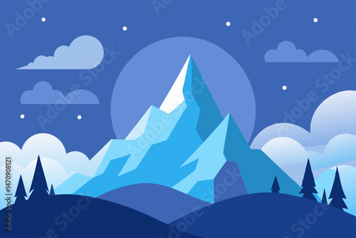 mountain, landscape, sky, sea, vector, illustration, water, nature, snow, mountain, ocean, winter, ice, night, tree, moon, summer, wave, christmas, hill, blue, travel, sun, cloud, cold