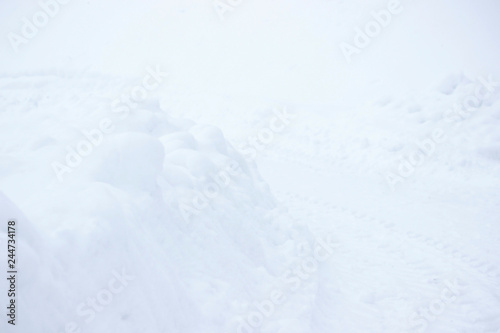 Winter landscape with snowfall and snowdrifts. snow removal in Gatchina Park