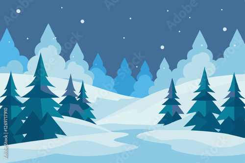 christmas, winter, tree, snow, landscape, forest, vector, holiday, illustration, snowflake, christmas, pine, season, tree, cold, celebration, scene, nature, card, design, fir, blue, sky, decoration, pattern