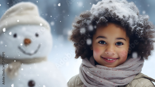 children, snow, snowing, snowman, snowfall, black hair, afro, snowflake, snowy, christmas, winter, november, december, happy holiday, christmas, white christmas, cold, ice, icy, nature, santa, family, gift, christmas gift, foulard, joy, happiness, jolly, white, forest, glacé, children, smile, fun, beauty, hat, face, smiling, holiday, season, children, woman, frost, childhood, card, banner