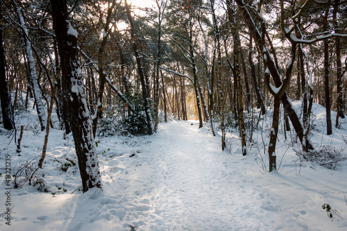 Winter scene in the woods near the village of Oud avereest, the trees and soil covered with a thick layer of snow, the Netherlands