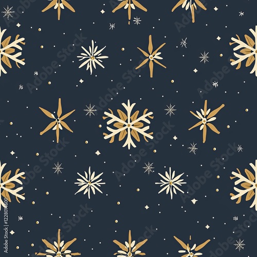 Winter seamless Pattern Background with Sikver and Gold Snowflakes. Can be used for textile, parer.