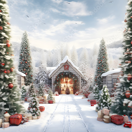 christmas, tree, winter, snow, christmas tree, sky, decoration, christmas, temple, siam, landscape, holiday, architecture, fir, cold, bangkok, celebration, forest, gift, nature, mountain, gold, buddhist, december, new year