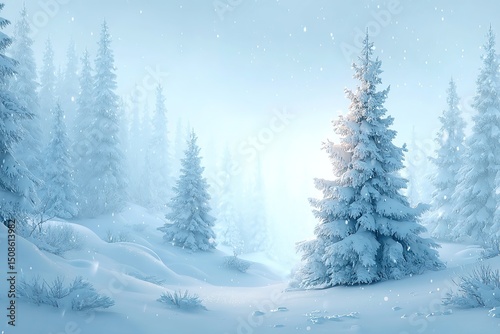 winter, snow, forest, tree, pine, snowfall, snowy, landscape, nature, cold, calm, peace, blue, light, sunlight, background, illustration, digital, three-dimensional, fantasy, magical, christmas, holiday, season, frosted, powdery, glacé, wonderland, photo, scene, covered, peaceful, illuminated, sparkling, sparkle, snowflake, path, mountain, hill, weather
