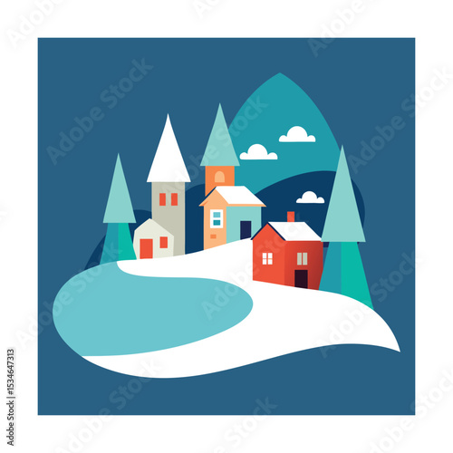 winter, village, snowy, landscape, house, greeting, visual, serene, quiet, picture, postcard, joyful, relaxing, peaceful, tranquil, idylli, holiday, vibrant, comfortable, merry, artwork, print, seasonal, festive, greeting, theme, graphic, calm, image, inviting, scene, cosy, hill, tree, charming, wonderland, happy, element, art, frosty