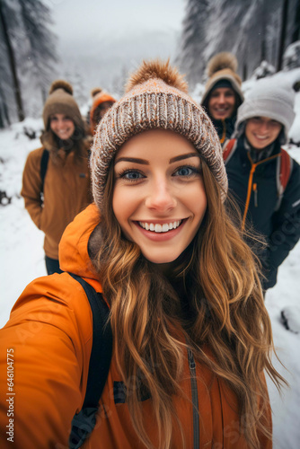 Winter Wonderland Pose: Adventurous Selfie on the Mountain, Generative AI