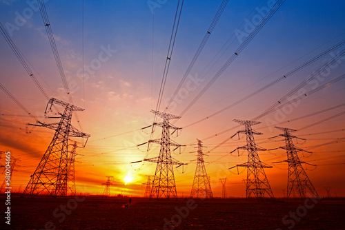 alternative, building construction, blue, dangerous, distribution, electronic, appliance, electric power, energy, engine, engineering, environment, equipment, framework, generation, grid, high, industry, wire, metal, mountain, plant, rod, pollution, powerful, sky, steel, structure, supply, high technology, tower, utility, voltage, watt, sunset